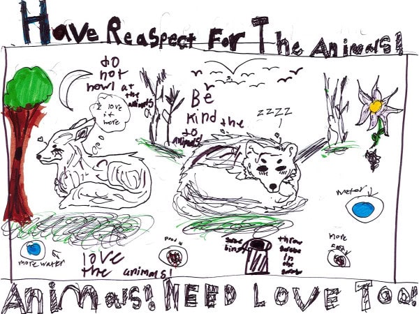 Our school believes in the importance of the Indigenous 7 Teachings. We have been talking about caring for animals throughout the year – how we respect animals, how to show animals love, why certain animals represent wisdom and courage. We also had the opportunity to go to the Edmonton Waste Management Centre and this tied it all together very nicely. Students learned about sorting waste in order to prevent them from going into the ocean. When we got back to school, they were eager to start their project. After some back and forth, the students decided to make posters for the school. In addition to putting posters up, they have started littering less and encouraging others from other classes to do so as well. The students have also even done a few presentations for the Grade 1 and 2 students on the importance of being kind to animals.