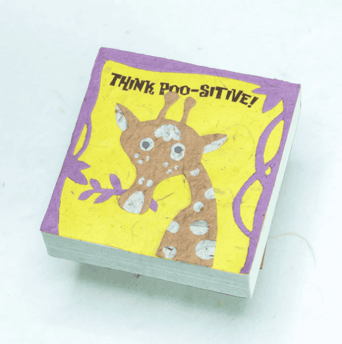 Bring a smile to someone’s face while helping the planet with our Giraffe Face Scratch Pad. A delightfully quirky, eco-conscious notepad with a playful zoo-themed cover. Made from animal poo fibers, this scratch pad turns an unexpected natural resource into a environmentally friendly piece of stationery.