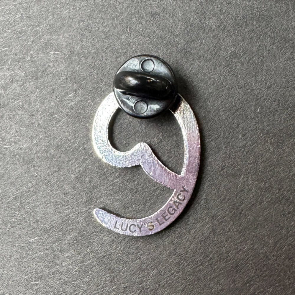 This beautifully crafted brushed silver metal pin is shaped in the form of a stylized lowercase “e”—a retro design that is both the original Edmonton Valley Zoo logo and the head of an elephant. A subtle redesign softened the appearance of tusks. Think you’ve seen this logo before? You have! This meaningful symbol lives on as the door handle to Lucy’s indoor habitat. This logo was selected for Lucy’s Legacy as a thoughtful tribute to Lucy’s enduring presence—past, present, and future. This pin is 1″ (2.5 cm) in height.